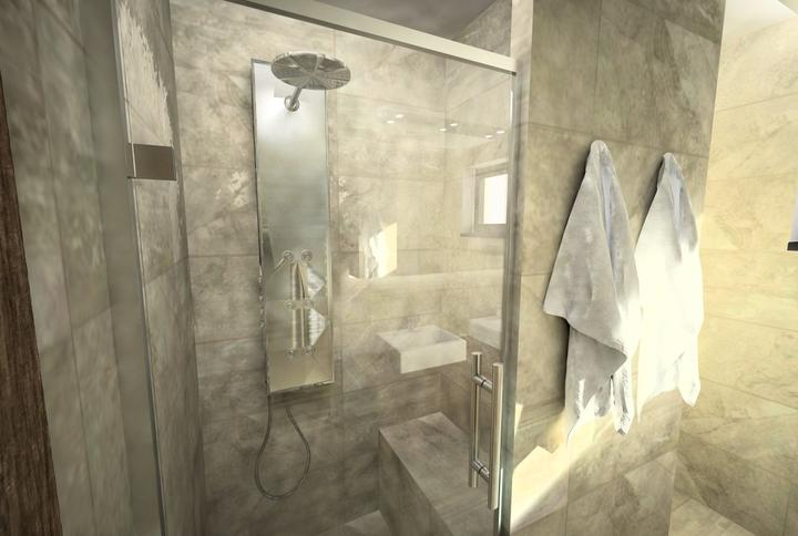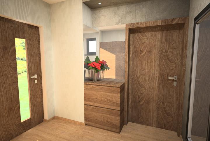 V rodinnom dome sme navrhovali vstupnú predsieň, detkú izbu a dve kúpeľne. V celom interiéry je použitá rovnaká podlaha, dlažba a omietkovina benátsky štuk. Nábytok je v drevodekore teplého orechového dreva. Kúpeľne sú ladedé tiež v teplom odtieni. …
