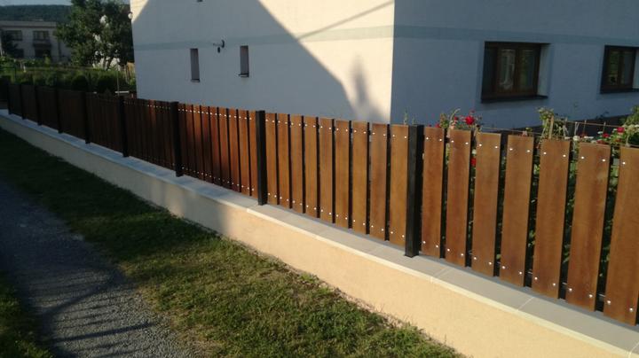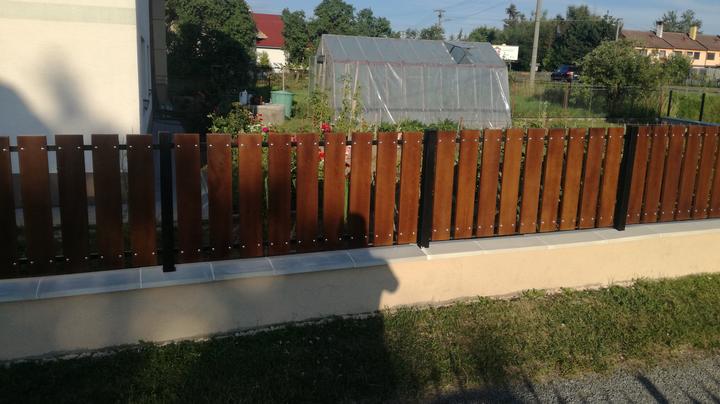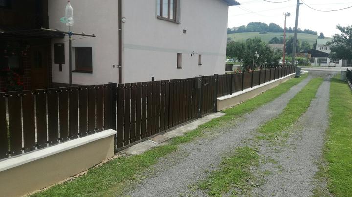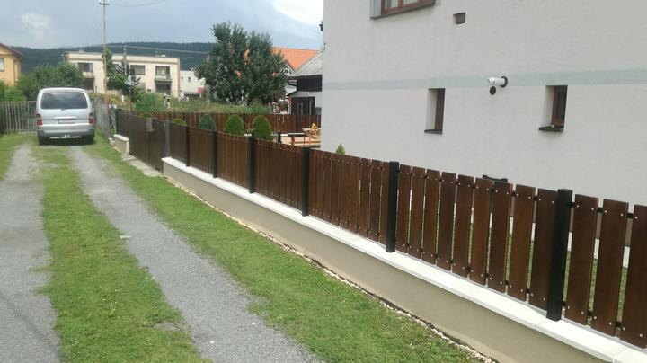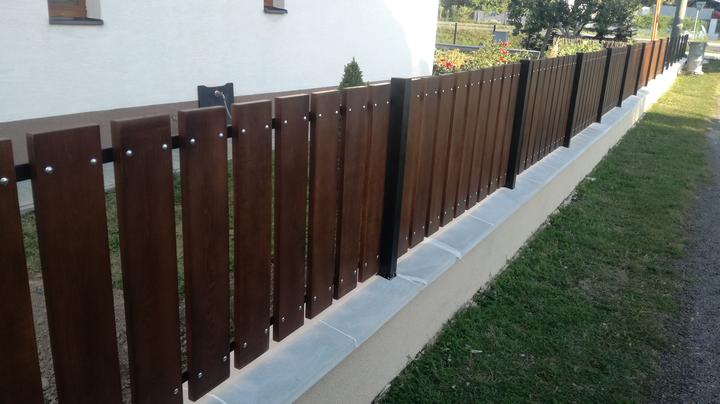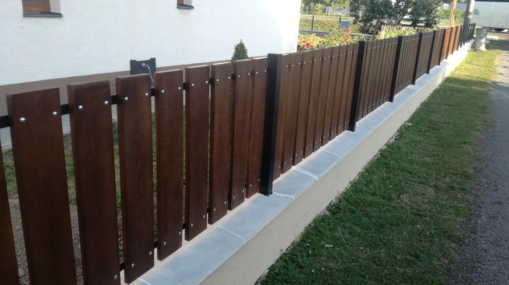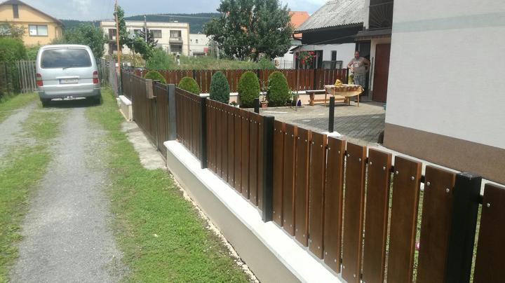 Z pôvodného plotu ostal len základ ktorý sa na niektorých miestach musel úplne vybrať a nadbetónovať na novo. Ako výplne si zákazníčka vybrala dubové drevo s tmavou povrchovou úpravou pre čo najlepšie zladenie s doplnakmi domu.