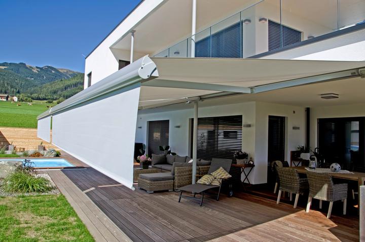 V kombinácií s výsuvným predným volánom si môžete vytvoriť tienenie aj po stranách markízy.