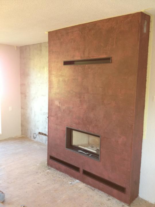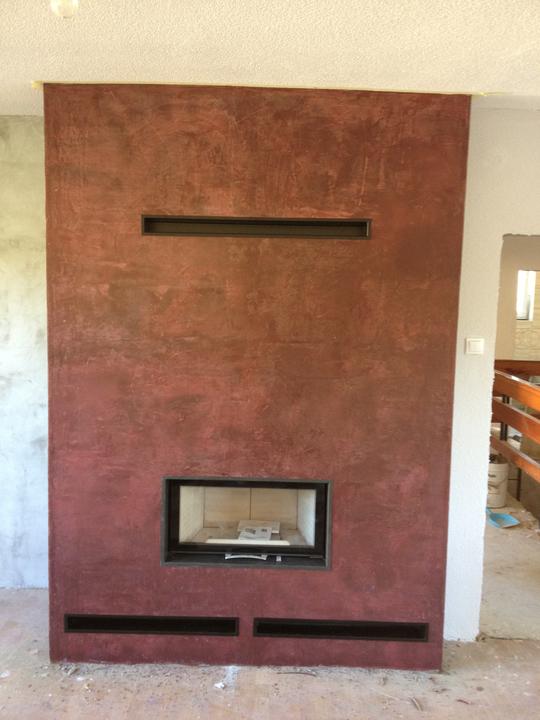 Krbová vložka Austroflamm 75x39 S ,izolačná obostavba ,teplovzdušné rozvody, povrchová úprava v benátskom štuku.