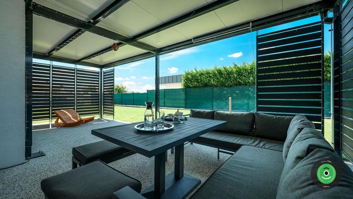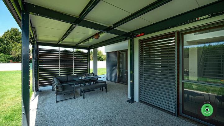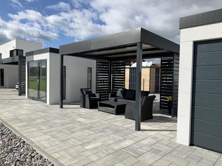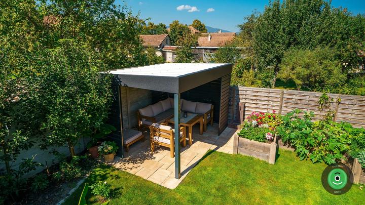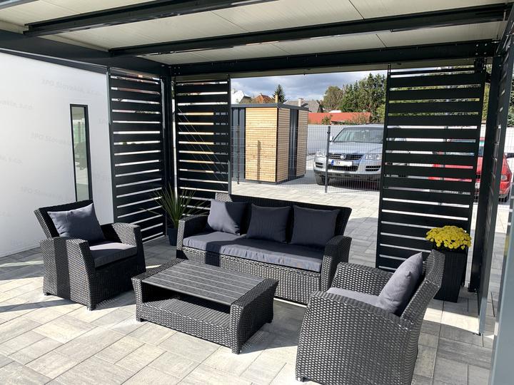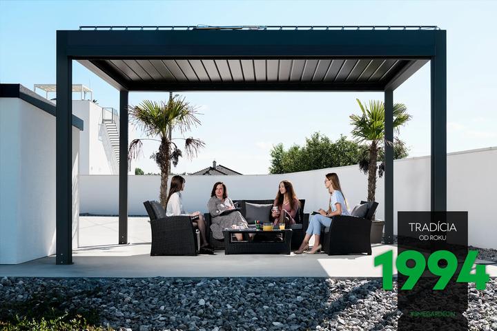 Moderná oceľová pergola GARDEON na posedenie s priateľmi alebo rodinné oslavy