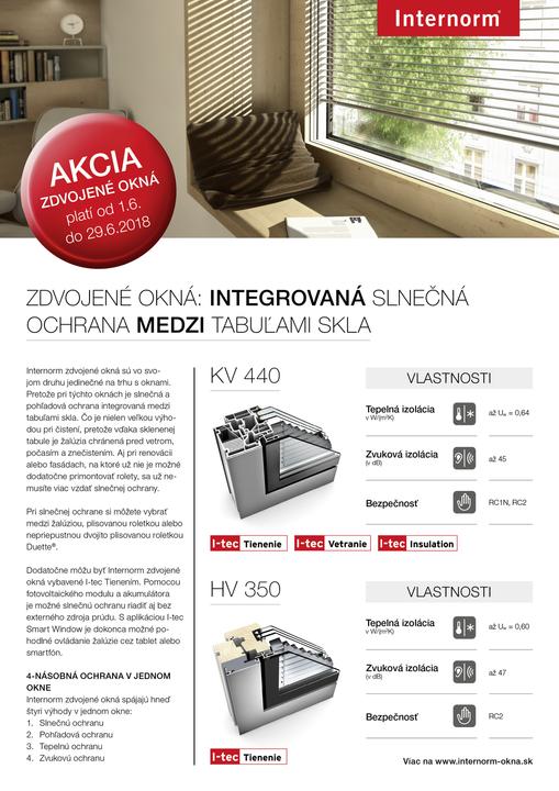 Objednajte si počas júnovej Internorm akcie zdvojené drevohliníkové okná HV 350 alebo plasthliníkové okná KV440 a získajte žalúziu, plisovanú roletku prípadne nepri…