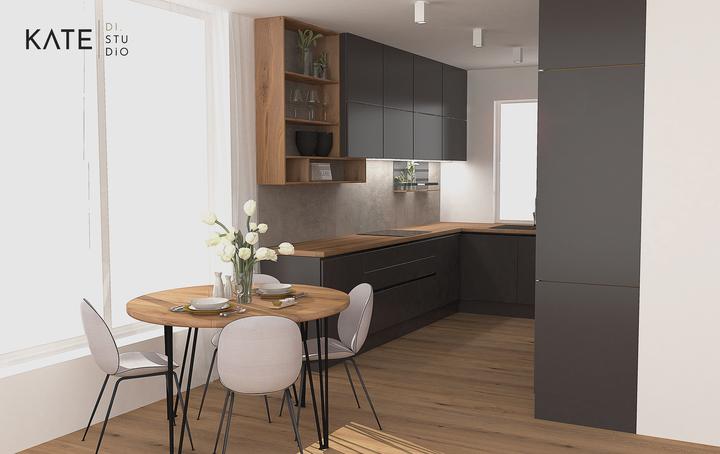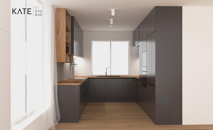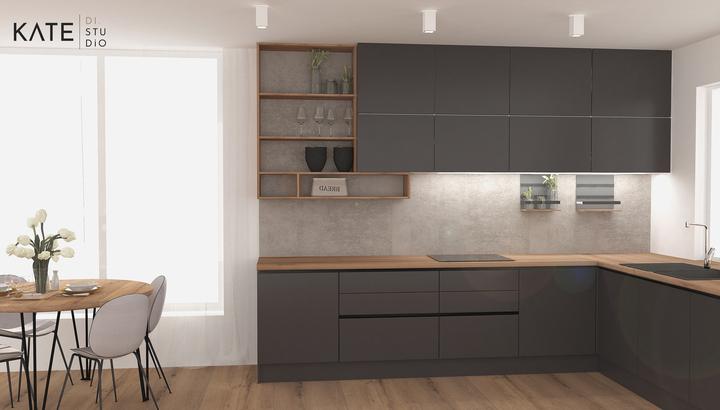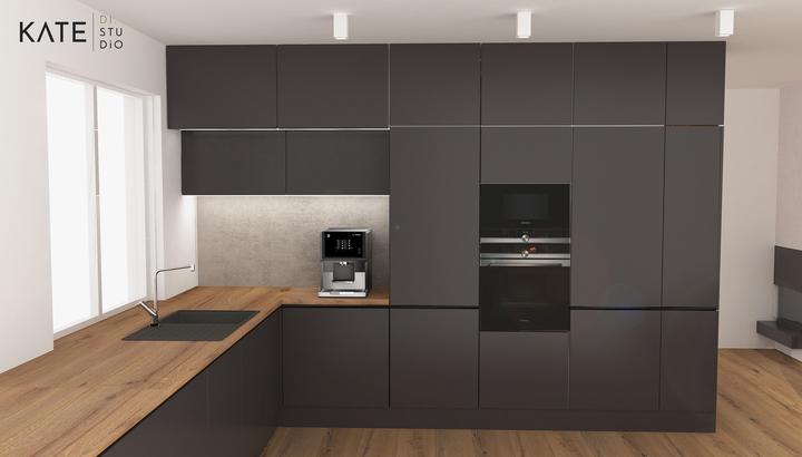 Kuchynská linka v kontrastnom prevedení s elegantnými frézovanými profilmi, ktoré nahrádzajú klasické madlá. Prevedenie dub koňakový v kombinácií s grafitovou šedou. Čo poviete ? 😊