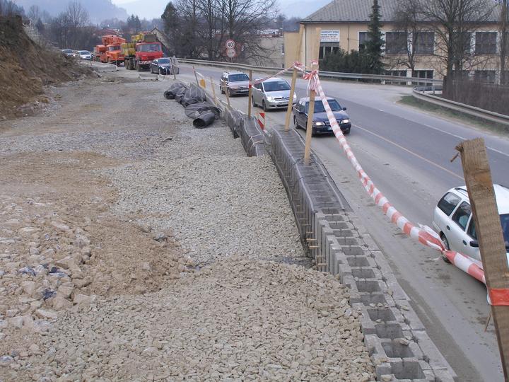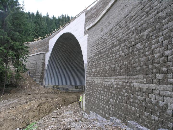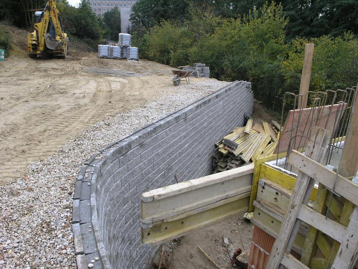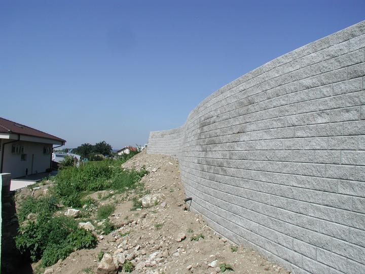 Múr vystužený geomrežami ( MVG ) má čelo zo špeciálnych malých betónových tvárnic, medzi ktoré sú vkladané geomreže. Geomreže ukotvené medzi tvárnicami sa ďalej rozprestierajú v zásype oporného múru ( OM ). Tvoria akési kotvy čela OM a zároveň vystu…