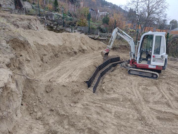 Postup prác pri výstavbe oporných múrov - strmých svahov s vegetačným čelom z panelov GreenSteel z oceľovej mrežoviny a zásypu z miestnej zeminy vystuženého geomražami. V tomto albume budeme postupne dopĺňať jednotlivé kroky a budeme ho ilustrovať f…
