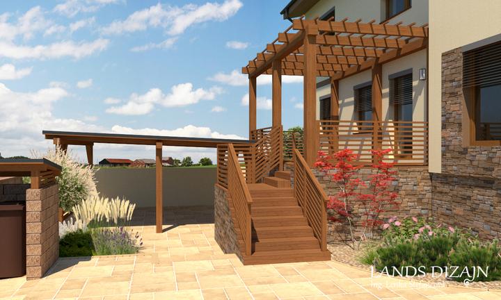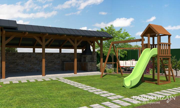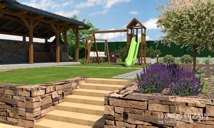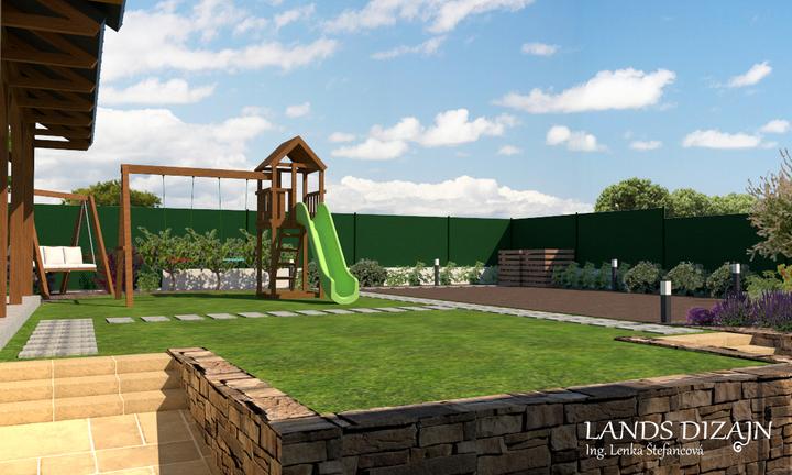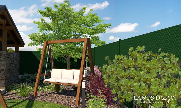 Pri návrhu menšej rodinnej záhrady bolo cieľom maximálne využitie vonkajšieho priestoru. V prednej časti záhrady je vytvorená odstavná plocha pre autá s prístreškom a tiež terasa s pergolou. V zadnej časti záhrady je okrem oddychovej a okrasnej čast…