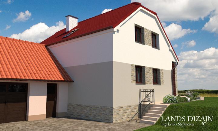 Pôvodná žlto-ružová fasáda rodinného domu bola navrhnutá v elegantnej farebnej kombinácii bielej a sivo-hnedej omietky s kamenným obkladom z rezaného pieskovca. Zapracovaná bola aj plánovaná výmena pôvodných okien a dverí za nové v drevodekore. Navr…