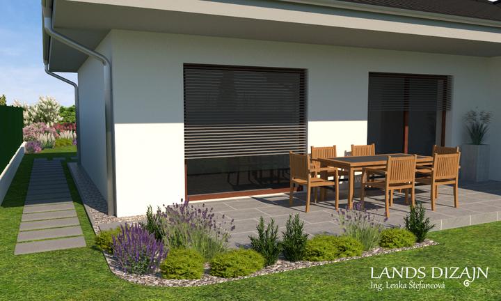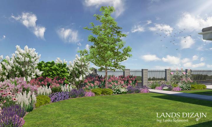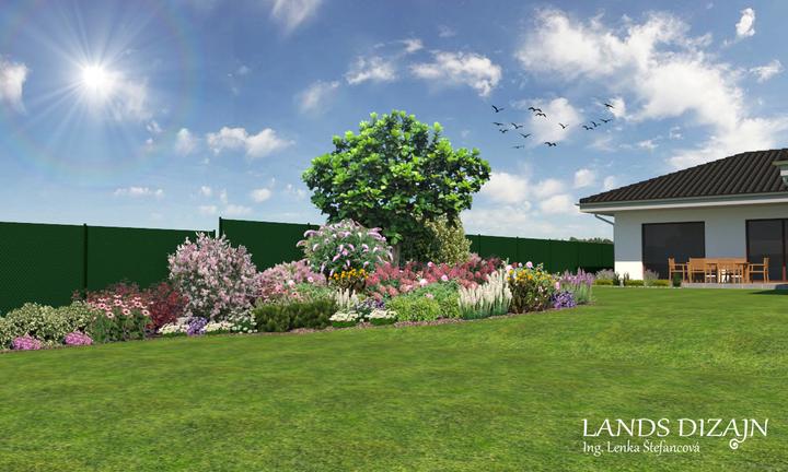 Návrh rodinnej záhrady s miernym svahom. Väčšiu časť záhrady tvorí plocha s trávnikom, ktorá zabezpečuje dostatok priestoru pre vonkajšie aktivity rodiny s deťmi. Spestrením záhrady sú pestré záhony okrasných rastlín, predovšetkým kvitnúcich trvalie…