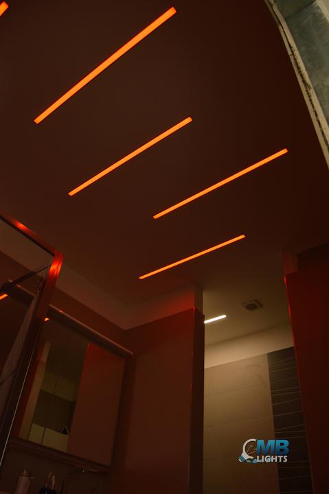 Použitý vysoko-svietivý led pás- 1600lm /m do profilu bol zabudovaný aj RGB pásik pre navodenie atmosféry pri kúpaní