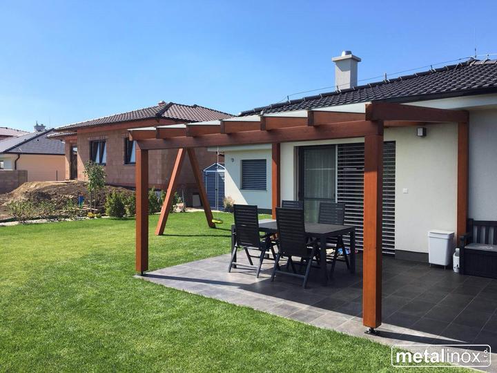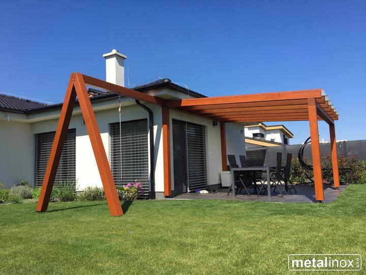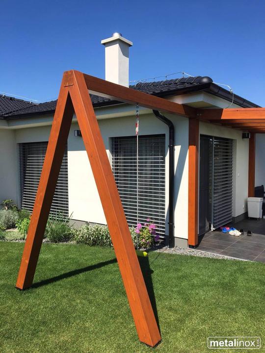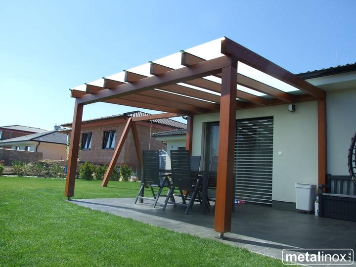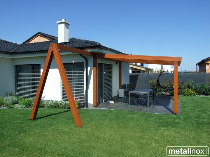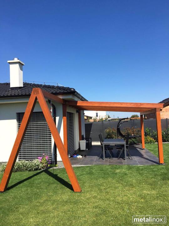 Drevený prístrešok Klasik s krytinou mliečne sklo a konštrukciou na húpačku