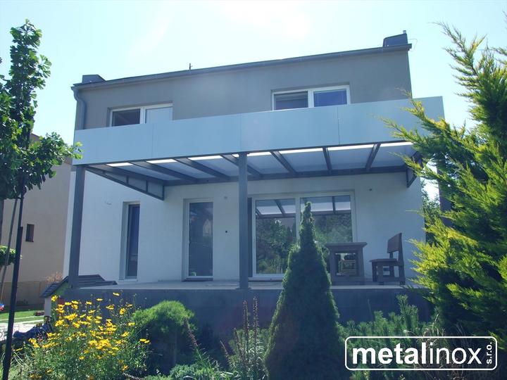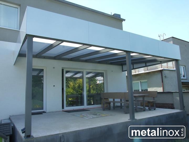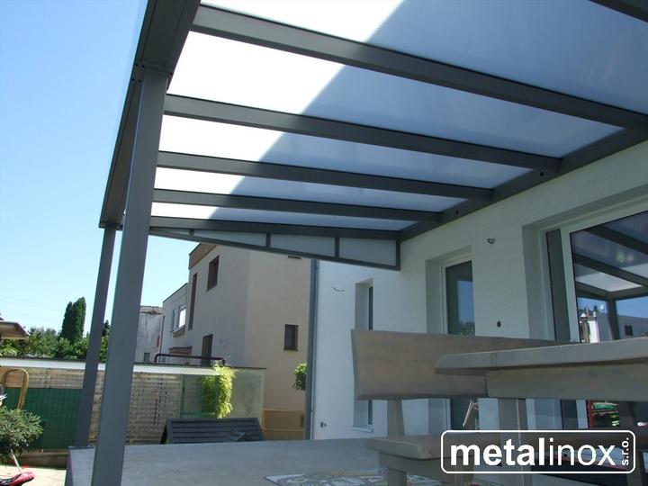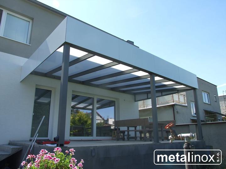 Oceľový prístrešok s krytinou lexan a obkladom