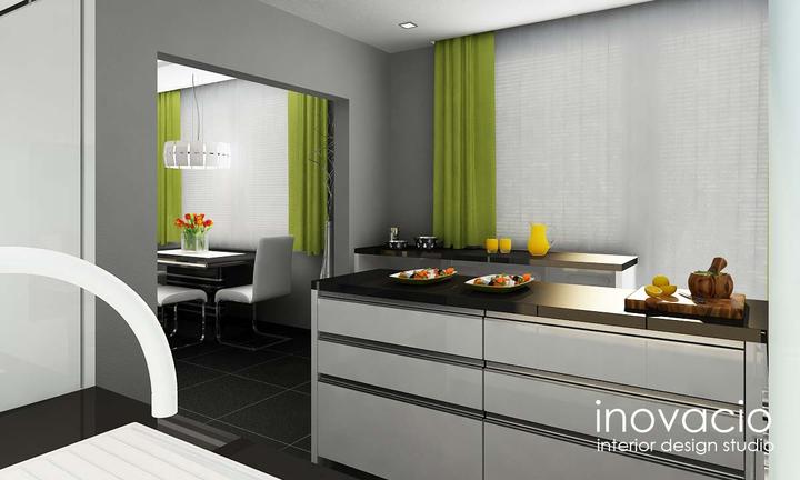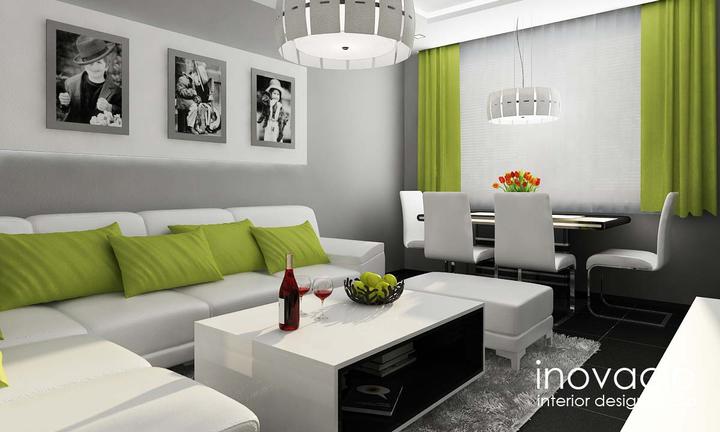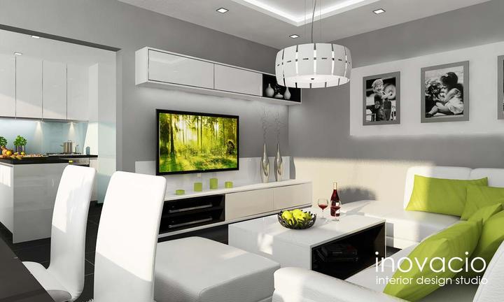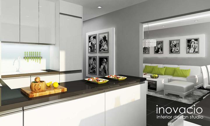 Interiér obývačky, kuchyne a chodby - byt Levice 2017
