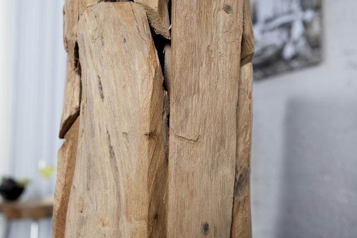 Luxusná lampa zo série Rotos je zaujímavá svojim prevedením. Noha lampy je z teakoveho masívneho dreva zložená z niekoľkých kusov, základňa v tvare štvorca dodáva stabilitu. Biele tienidlo je uchytené na kovovej konštrukcii v chrómovom prevedení pom…
