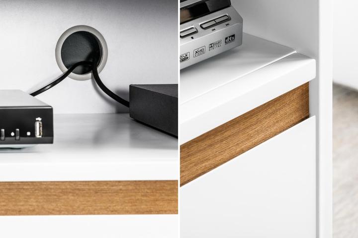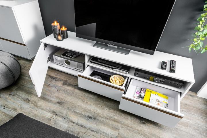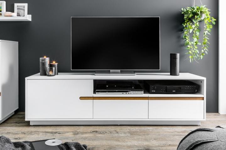 Veľký TV stolík zo série Wotang. Konštrukcia stolíka je z tvrdej MDF dosky, ktorá je pevná a ťažká. Povrchová úprava je v matnom bielom prevedení. Stolík je dlhý až 160cm a poskytuje dostatok úložného priestoru. Dve skrinky s dvierkami a úložný prie…