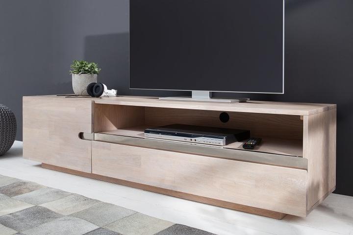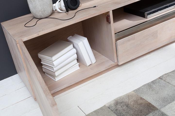 Veľký TV stolík zo série Wotang White. Konštrukcia stolíka je z masívneho dubového dreva, ktorý je pevný a ťažký. Povrchová úprava je upravená bielením. Stolík je dlhý až 170cm a poskytuje dostatok úložného priestoru. Dve skrinky s dvierkami a úložný priestor. Dizajn dopĺňa kovová lišta v nerezovom prevedení. Skombinujte si stolík s konferenčným stolíkom. Vynikne v každej obývačke.