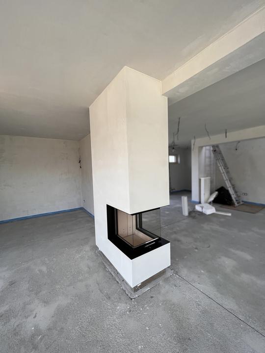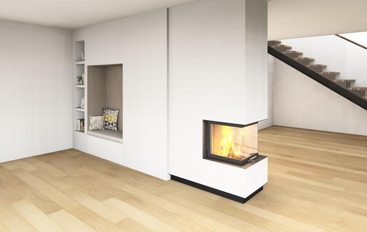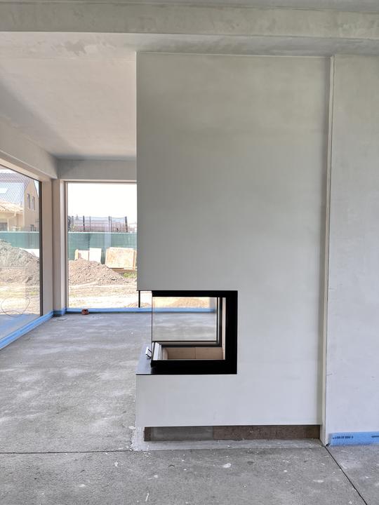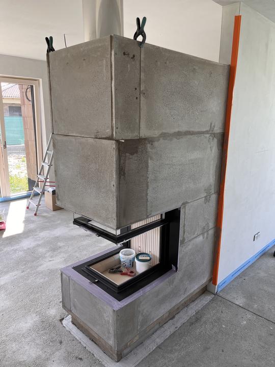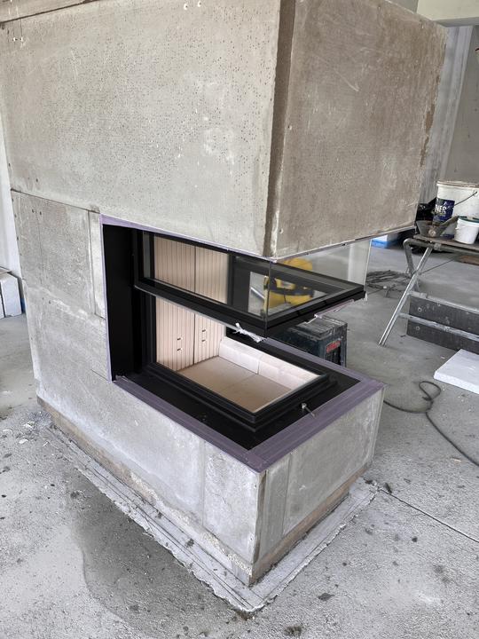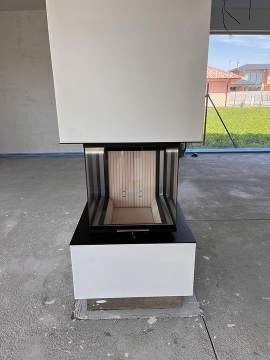 Akumulačné dielo od návrhu až po realizáciu s trojstrannou vložkou a nosným rámom - HOXTER UKA, obstavané ťažkým akumulačným materiálom, dizajnovo doplnené o uskočený spodný sokel, ktorý bude neskôr imitovať oceľovú podstavu.