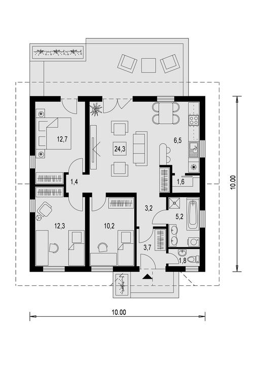 Samostatne stojaci rodinný dom LAGUNA 11 bez podpivničenia je vhodný do rovinatého, prípadne mierne svahovitého terénu. Je to dom strednej veľkostnej kategórie určený pre 4 člennú rodinu.
