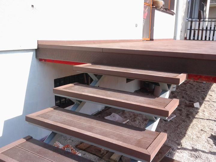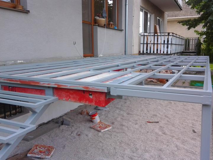 A terasa osadena na zeleznu konstrukciu a schody