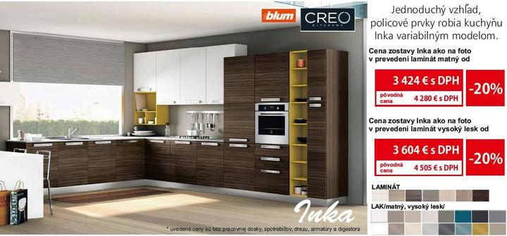 Model INKA od výrobcu CREO - Kvalitné vyhotovenie Polimerický laminát ( nie fólia !! ) komplet s kovaniami Blum. Možnosť riešenia na mieru pre dan…