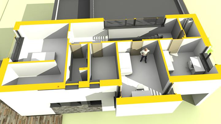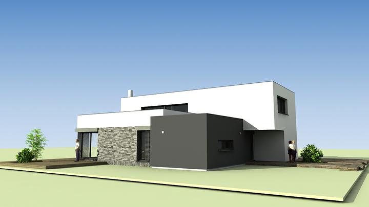 moderný rodinný dom s rovnou strechou, veľkorysé spoločenské priestory, zvýšený strop v obývacej izba a jedálni + staronový prvok "activities" inšpirovaný americkou architektúrou z Arizonských funkcionalistických víl z rokov 1945-1966, kde…