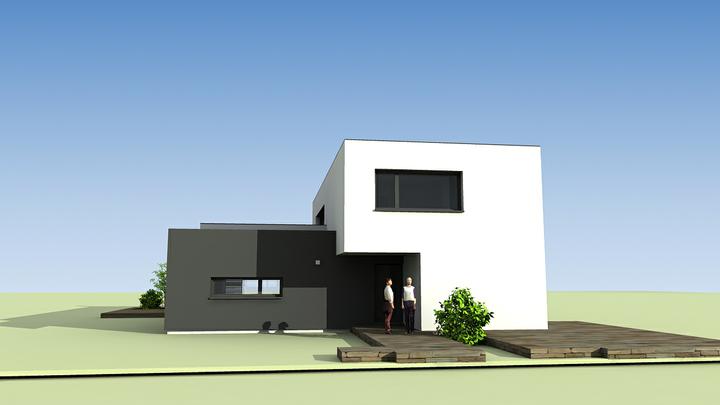 moderný rodinný dom s rovnou strechou, veľkorysé spoločenské priestory, zvýšený strop v obývacej izba a jedálni + staronový prvok "activities" inšpirovaný americkou architektúrou z Arizonských funkcionalistických víl z rokov 1945-1966, kde je priestor napr. pre vianočný stromček, hranie detí, kreslo na čítanie alebo relaxovanie... tento všestranne použiteľný priestor by mal byť aj flexibilný