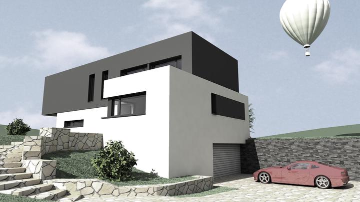 moderný rodinný dom, z exteriéru charakteristický odvážnou konzolou, z interiéru dominantným trojstranne otvoreným krbom s rozmermi krbovej vložky 1000 x 1500mm. Krb je srdcom domu, oddeľuje obývačku od jedálne s kuchyňou. Na prízemí máme okrem inéh…