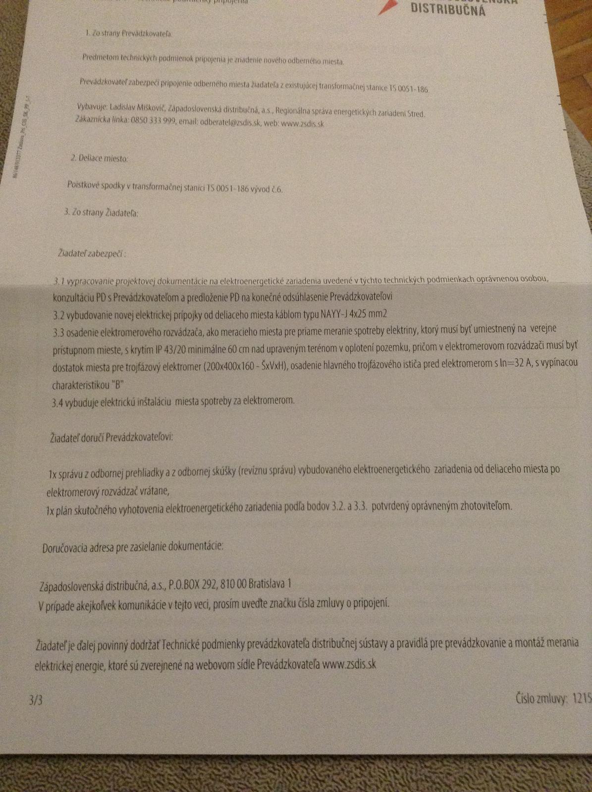 Tak som si precital tie technicke podmienky pripojenia... Uzasne, ako to tam napisu, ten bod 3.2.... Vybudujte si novu pripojku a my vam tam potom za 300€ dame hodiny....