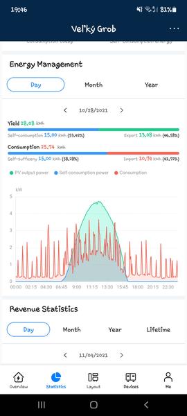 28.10. som mal spotrebovane za menicom 32,73kWh ako spotrebu domu, ale to islo 15h z baterii co boli nabite i den pred tym.