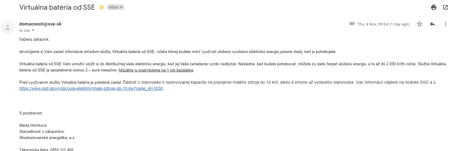 Taktiež som tu videl, že u SSE má virtuálna batéria obmedzenú kapacitu na 2MWh sa mi zdá. Presne toto som sa pýtal pána s ktorým riešim VB a jasne mi napísal toto: