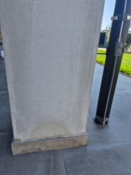 Ideme robit fasadu a tento jeden stlp vyzera takto.Aj ked je strecha tak na neho zvykne prsat.Je to klasika DT+styrodur. Ano nevieme ci je nejaka hydroizolacia odspodu tak predpokladam ze nie.Ako by sa toto dalo izolovat aby fasada neopadla casom?