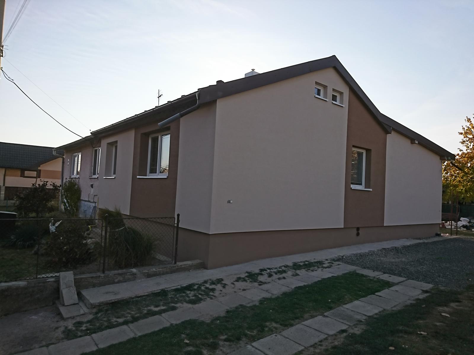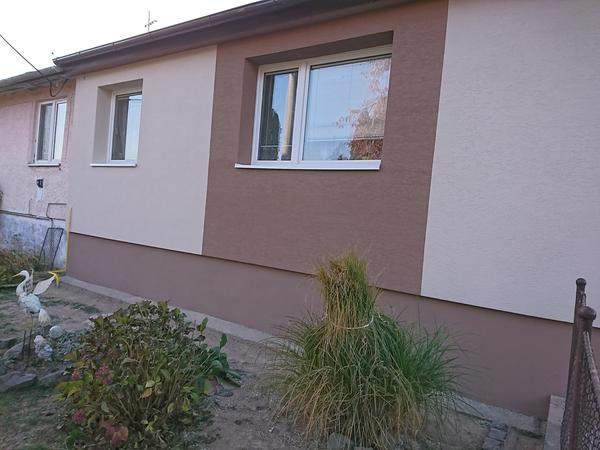 Pekný večer. Idem si po radu... Riešime fasádu... Farba by mala byť svetle capucino... V kombinácii s tmavším odtieňom capucina. Teda 2farby... Okná mame biele... Z pred mame 2okna takže jedna farba by nevadila no z boku od dvora mame dlllhu stenu kde je jedno okno ani nie v strede... vid foto ma niekto nejaký nápad ako by to mohlo byt pekne....
