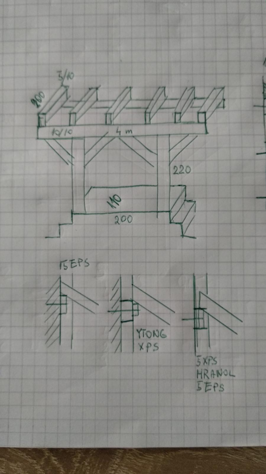 3,na stenu 5cm XPS,hranol z krokvou a dorovnať 5 CM eps z fasádou