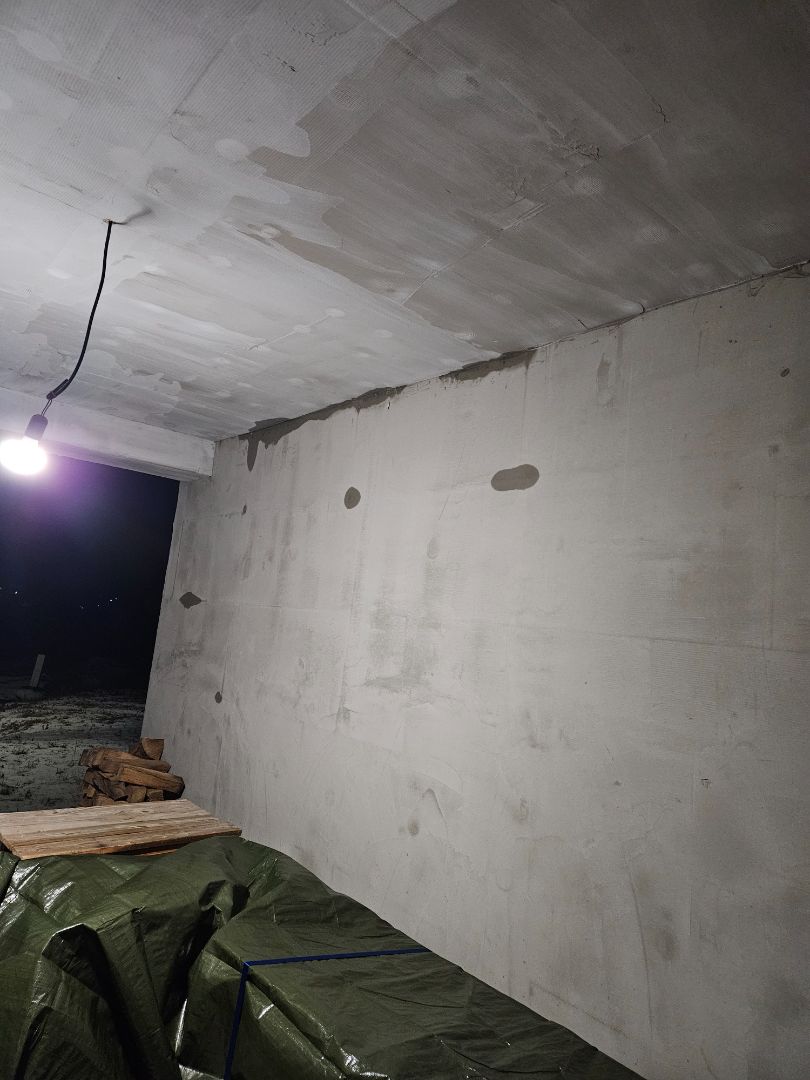 Fotky stavu pred tým ako na to nagrcali to lepidlo by sa našli? Okrem toho že je to celé krivé, kde- tu vykukuje sieťka, vlny jak na mori, čiary od gleťáku, tam máte poriadne tepelné mosty. Keďže na fotke 5/5 sú vidno mokré fľaky aj na rovnej stene spojoch medzi tabuľami, tam je zrejme fuga až po murivo. Inak, kde sú kotvy? Na tej foto 5/5 vidím nejaké náznaky po terčíkoch v spodnom rade, potom jeden random v strede steny a potom už nikde nič. Okná vám kto osádzal? Tá mokrá mapa nad oknom vyzerá ako keby medzi okenným rámom a stenou bola fuga. Keď vám vlhnú krokvy na povale, to vám za chvíľu zhnije krov. Je pod vodorovnou izoláciou urobená parozábrana? To že sa vám nerobili mapy pri mínus 10 je zrejme kvôli tomu, že pri silnejších mrazoch obsahuje vzduch menej vlhkosti.