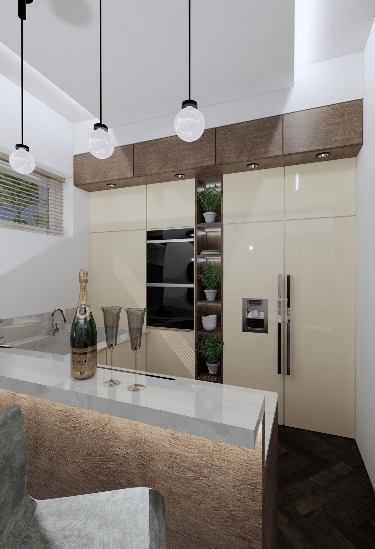 mna na tej vizu irituje ten akoze barovy pult. Prakticky absolutne nevyuzitelny, stane sa z neho odkladisko capovin. Ani tu sprostu ranajsiu kavu si pri nom nevypijete. Cela kuchyna je na paradu a nie na varenie. Ale vy viete kolko a co varite, ale aj dvojchodvy nedelny obed bude problem. A ked niekto, kto sa nazyva prfesionalom skombinuje ladovo bielu s teplou bielou, az smotanovou v jednom priestore, mal by sa ist radsej zivit kopanim kanalov...