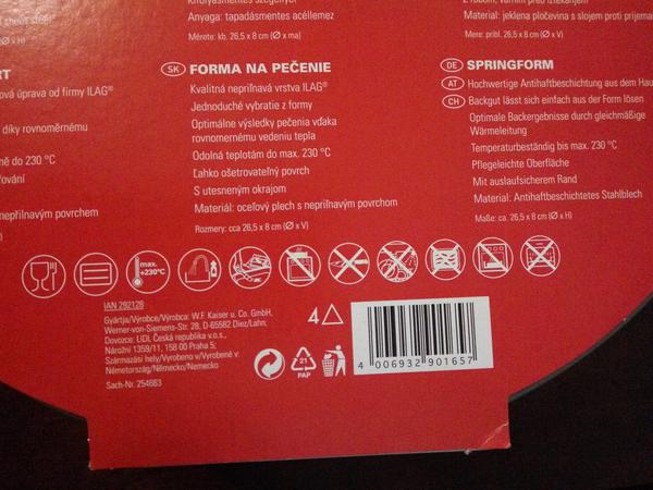 Zdravím, pomôžte mi prosím identifikovať symboly na obale formy na pečenie. zaujímajú ma hlavne druhý a posledné dva. ostatné som nejak vydedukoval. Ďakujem