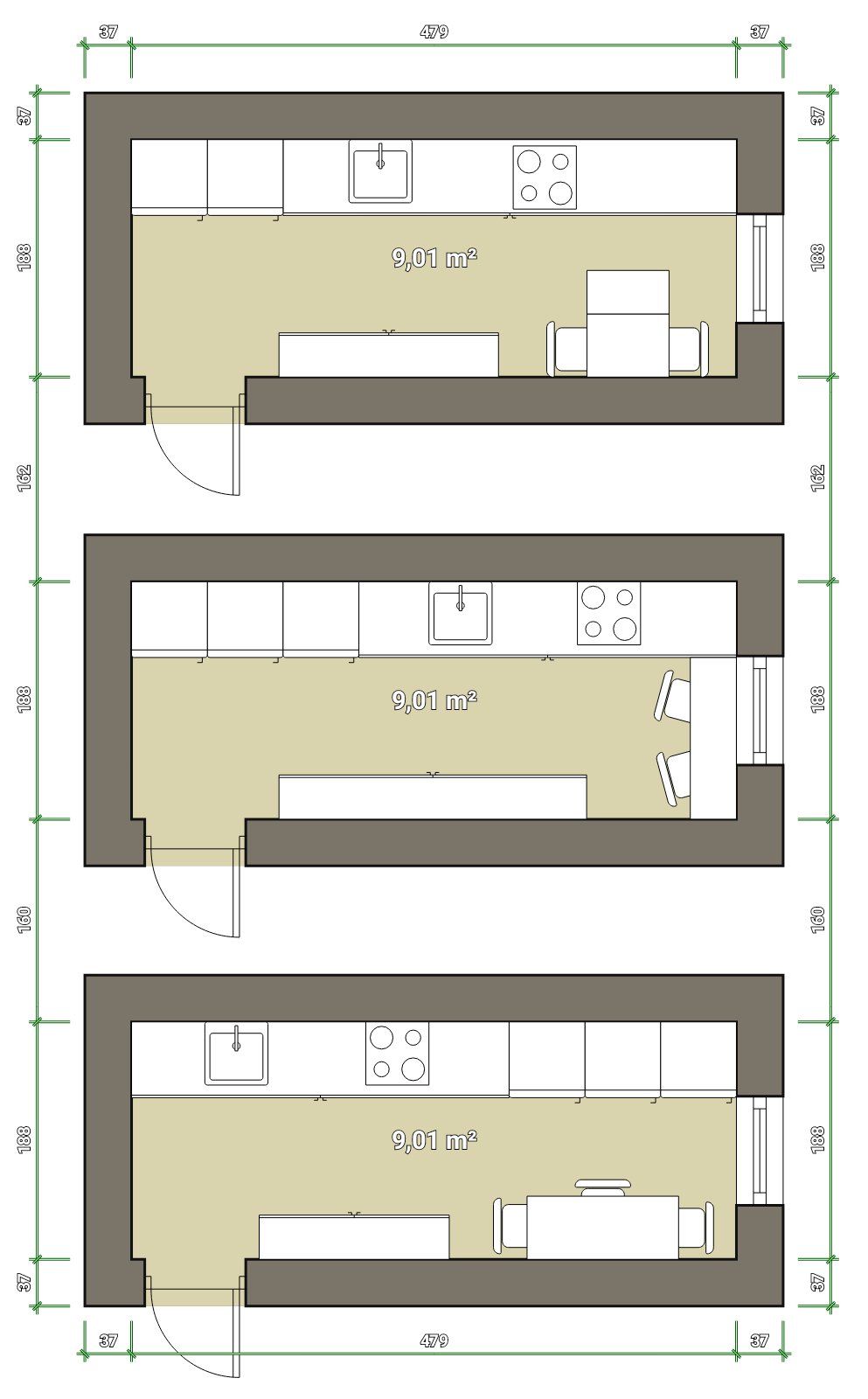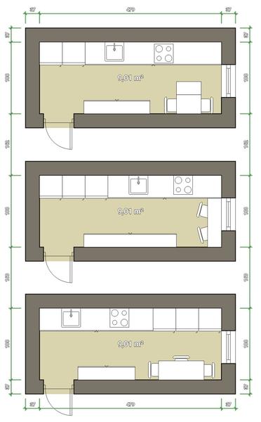 Brat ma podobnú. Na stene kde bola pôvodná linka potiahli linku tak aby k oknu vošla ešte chladnička, od dverí majú meter a pol linku ale spodné skrinky na polovičnú hĺbku a medzi oknom a linkou menší stôl a stolicky