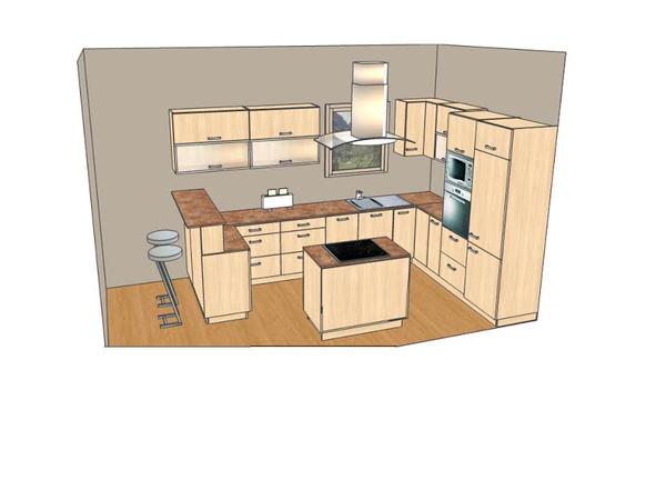 - mozno by som zrusil cely ostrov a prehodil varnu dosku do lava kde je pult a mas viac miesta v kuchyni, priestoru tam mas dost a usetris aj na digestore, lebo ostrovkove su riadne drahe. takto bude moct byt na stene a mas vyvod rovno von.