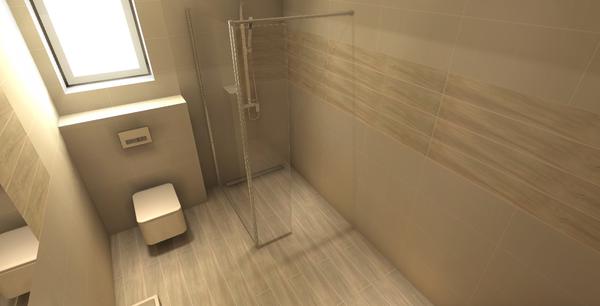 Takto to mali v bomare uvazujem na tým či to nedať na podlahu ten drevo - dekor a nech vystupuje do sprcháča tak ako to maju tu a potom iba ten pásik dookola napr