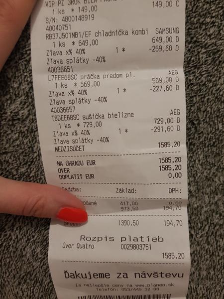 @martinka_p akože ak to ide asi takto zaplatiť tak to môže byť OK ale viac menej som sa informoval o túto akciu 3x ani raz mi nebolo povedané že to môžem hneď zaplatit. Prvý krát mi obchodník ani o navýšení Quatro nepovedal. Potom cez telefón áno takže to už bola.cena úplne inde a keď som tam bol zase osobne tak mi povedal že.mozno je taká možnosť keď sa.informujem u Quatro. No ako som písal nakoniec som zistil konkrétne u asi vyšších rádov AEG je 5 rocna zaruka. No u iných výrobkoch by sa to možno mohlo oplatiť. Mohlo 😆😛