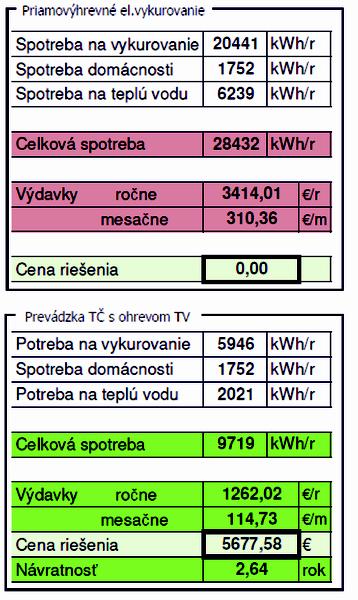 aj pri novostavbách sa uvažuje s navratosťou, keď sa porovnávajú dva spôsoby vykurovania, Príklad, alektrokotol verzus TČ