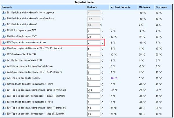Cize teraz to mas nastavene tak, ze ak klesne teplota na vystupe do exterieru pod 2°C, tak vypne rekuperaciu?