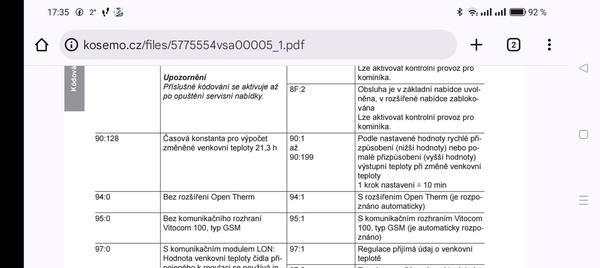 Dobrý deň ja by som poprosil u toho kotla neviete ak ma byť nastavená položka 90:128 to časová os vyhodnocovania vonkajšej a vnútornej teploty aký je priatelená hodnota. Ďakujem.ej teploty aky je priatelna hodnota.Dakujem.