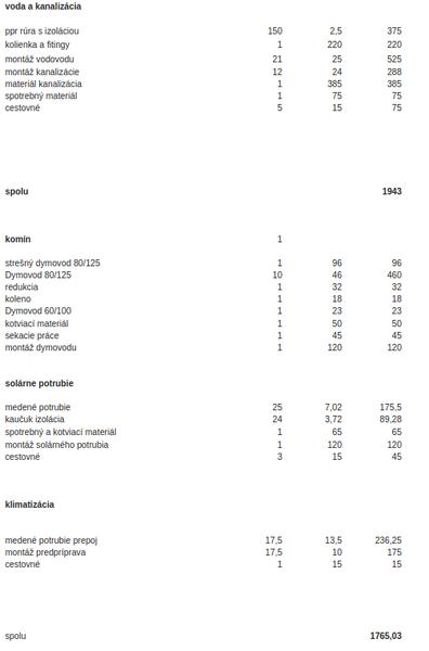 proste komplet voda, kanalizacia a kurenie (! bez radiatorov a bez zasobnika !) ma vyslo 11805.
