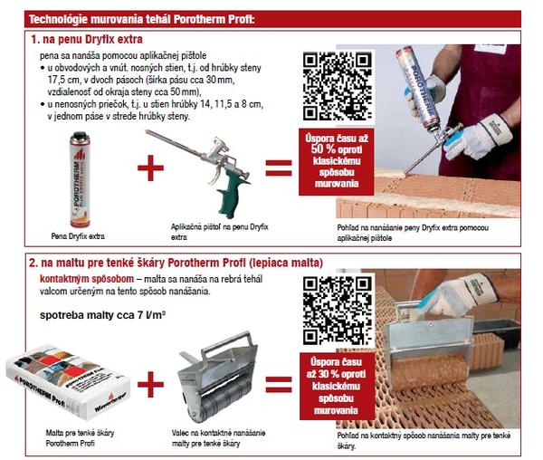 Od roku 2002 sa vyrábajú tehly Porotherm Profi. Sú brúsené na výšku 249 mm + 1 mm na: