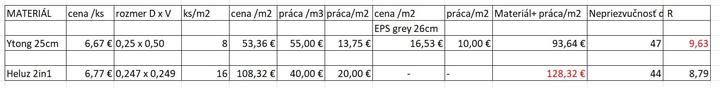 @eagleowl tie materialy, co porovnavas v tabulke ale nie su totozke, co sa tyka rozmerov. to mi nejak nesedi. a tiez ten prvy ytong asi nie je v zateplenej verzii ako ten druhy heluz. a to r tam tiez nesedi. a podla coho si tam zadal cenu za tu pracu?