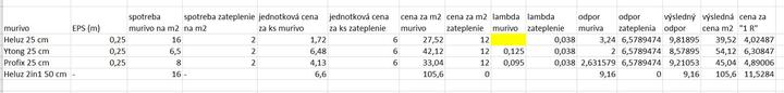 @dam768 ibazeby si sa mylil. Su jednoduchsie sposoby dosiahnutia pasivu. Toto je tabulka zostavena s internetovymi cenami internetovych stavebnin v 11/2024. Heluz 25 tehla nema uvedenu lambdu nakolko v technickom liste bola len hodnota R tak som ju dosadil napriamo. 2v1 totalne pohorelo v hodnote za peniaze predrazene jak slak. Tento rozdiel v cene za pracu nemas sancu dohnat.