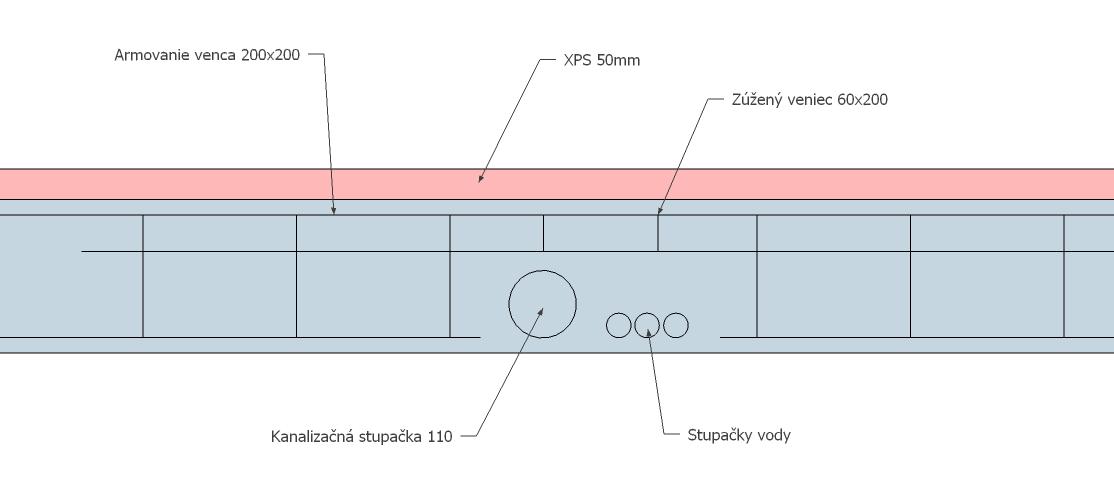 Riešim momentálne otázku, ako spraviť prestup kanalizácie a vody cez veniec nad obvodovou stenou do podkrovia, tak aby som zbytočne neoslabil veniec. Nepodarilo sa mi nikde nájsť detail riešenia.