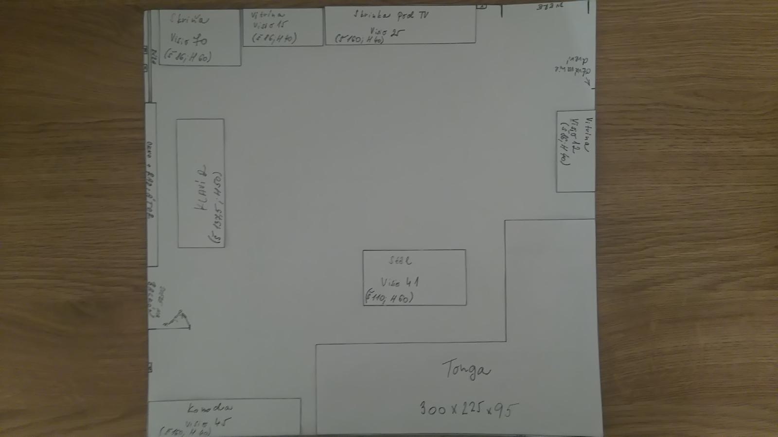 Teraz som ukazal drahej Tvoj navrh, zapacil sa jej. Povedal som, ze komoda prec a da sa tam skrina a predlzia sa sedacka - dlhsia na sirku. Na komode vsak trva. Ja trvam zas na tom, ze nebudem televizor kukat z kuta :)