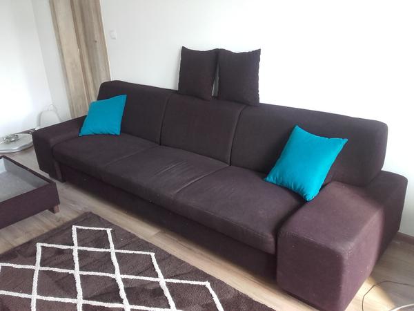 predavam tyrkysovo tmavo hnedu sedacku..ale s kombinaciou sivej by sa hodila tiez...ma kt omu aj tyrkysove tienidlo a svetlo...aj zavesy by bolo mozne dat k tommu, ak by bol zaujem
