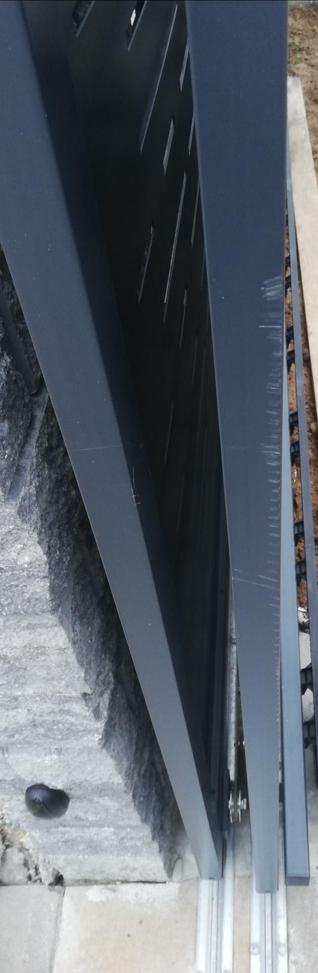 Farba je odreta a odrety je aj spodny Roh patky na motore brány.